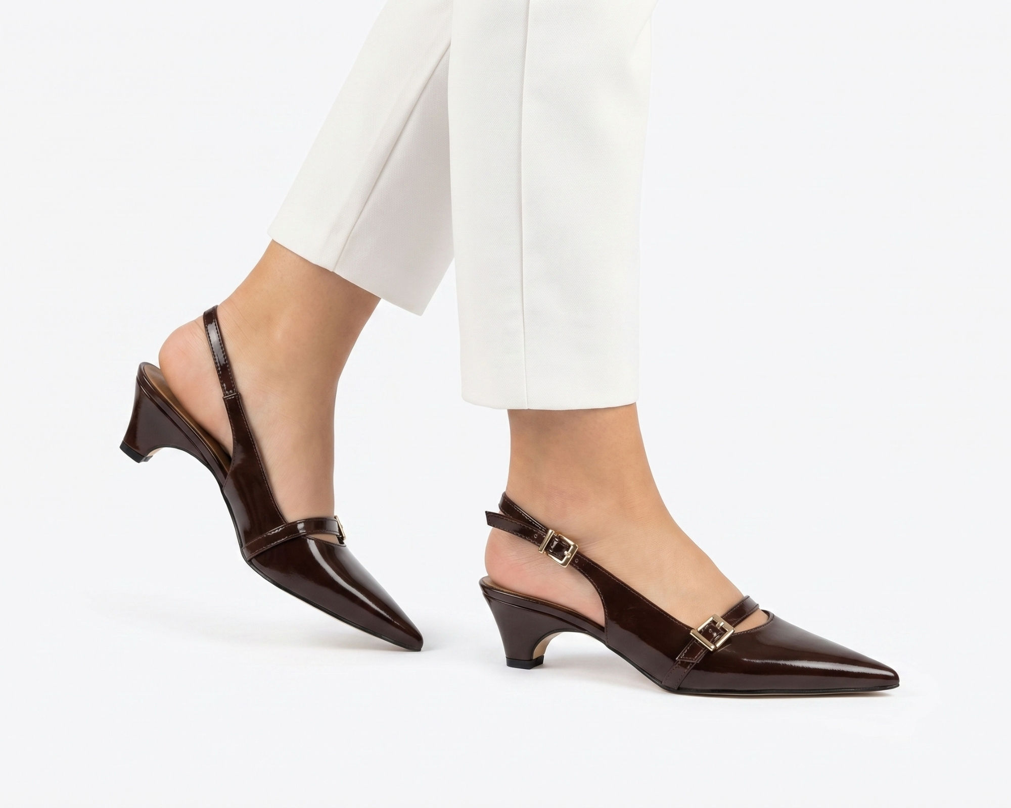 Fermi topuklu ayakkabı, modern çizgileri ve zarif tasarımıyla günlük şıklığı konforla buluşturuyor. İnce sivri burun formu ve parlak yüzey dokusu sayesinde sofistike bir görünüm sunarken, açık arka bant detayı ayağa hafiflik ve rahat kullanım sağlar. Gün boyu rahat hareket etmenizi sağlayan ergonomik yapısı ile hem şehir temposuna hem özel kombinlere uyum sağlar.