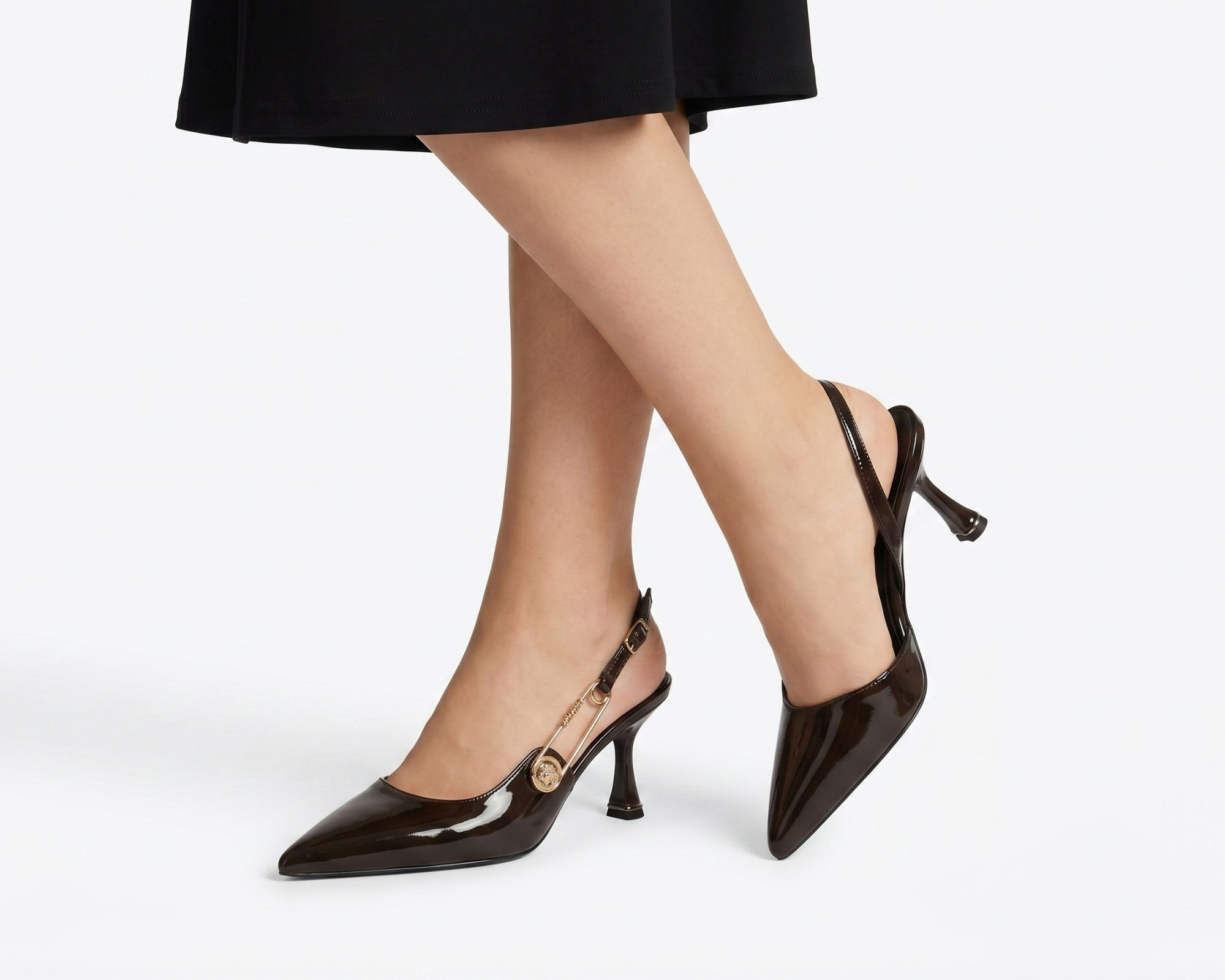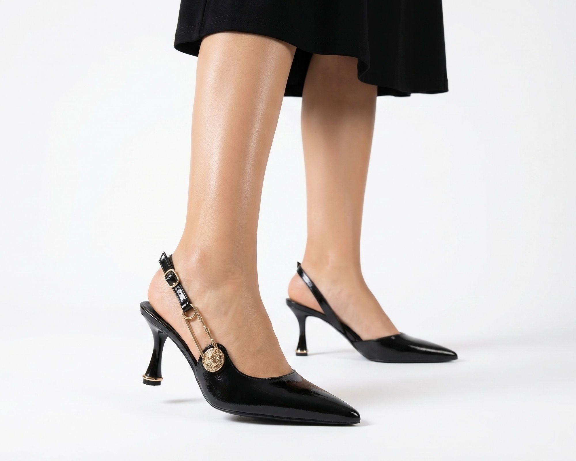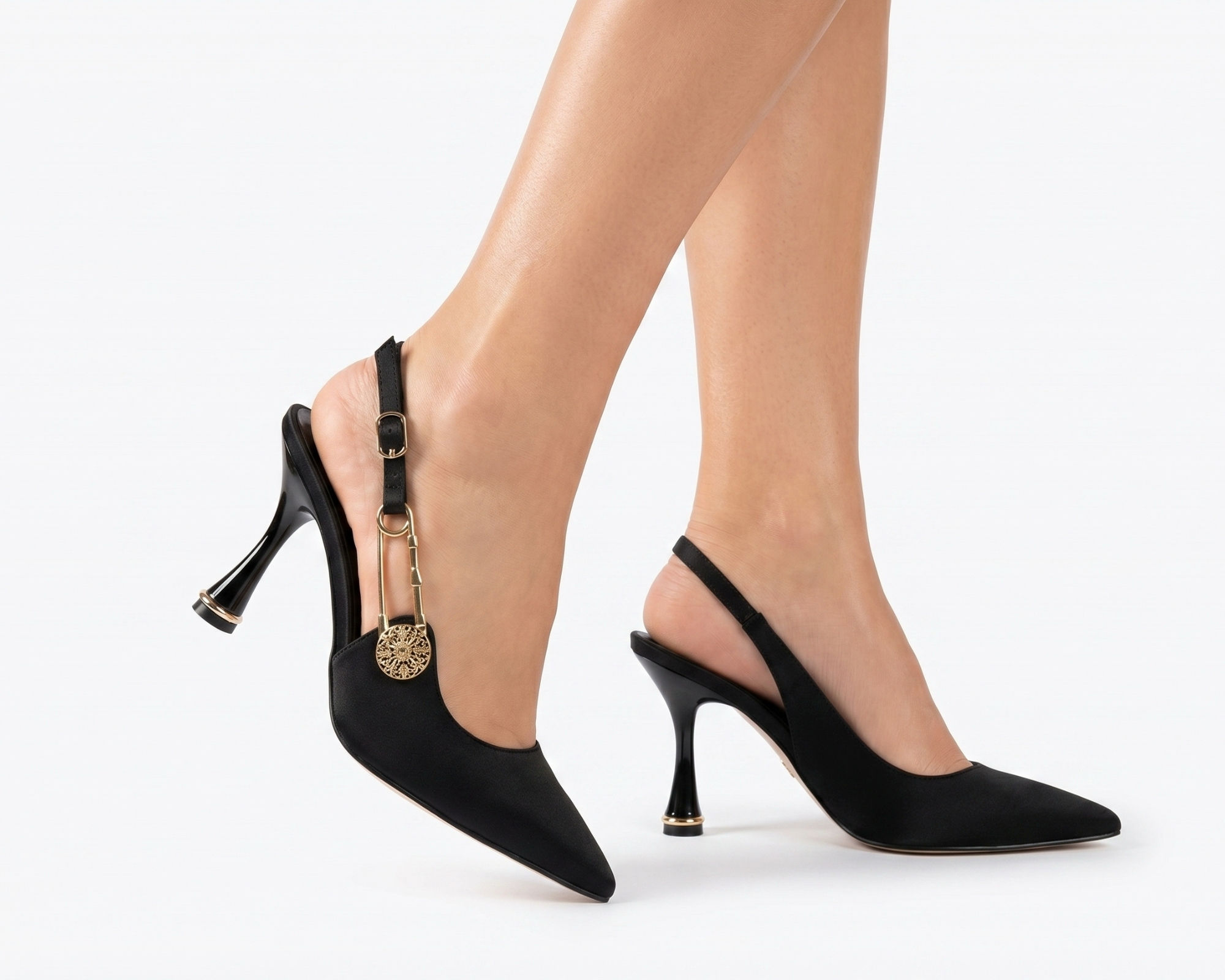 Luxi topuklu ayakkabı, sofistike tasarımı ve ince detaylarıyla modern kadın stiline şıklık katıyor. Sivri burun formu, zarif silueti ön plana çıkarırken 7 cm topuk boyu hem estetik bir duruş hem de dengeli bir kullanım sağlar. Arka açık slingback tasarımı ayağı zarifçe sarar, ayarlanabilir bant detayı ise konforlu ve güvenli bir kullanım sunar.