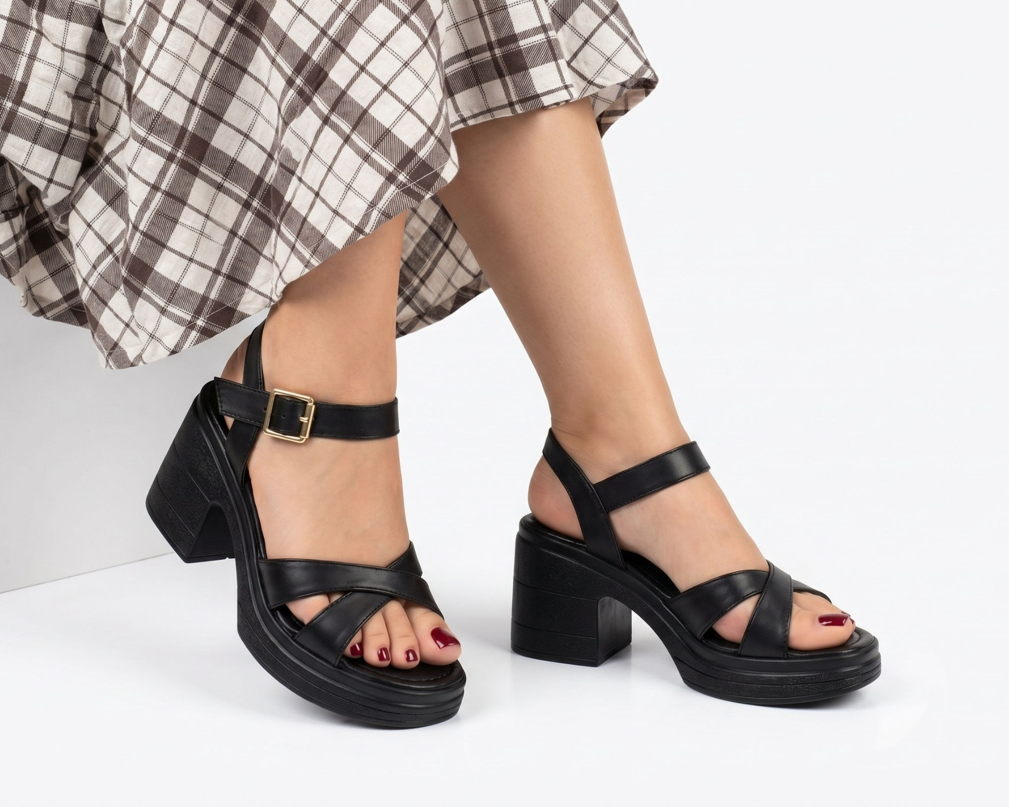 Sevi sandalet, modern çizgileri ve güçlü duruşuyla günlük stilin vazgeçilmez parçalarından biri olmaya adaydır. Kalın topuklu ve platform tabanlı tasarımı hem dengeli bir yürüyüş sağlar hem de gün boyu rahat kullanım sunar. Çapraz bant detayları ayağı zarif şekilde kavrarken, ayarlanabilir bilek tokası güvenli ve konforlu bir kullanım deneyimi sağlar.